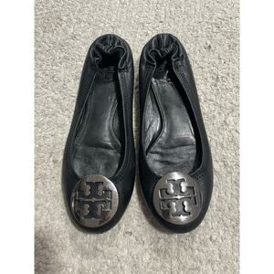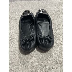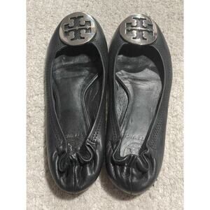 Tory Burch Reva Ballet Flats DISCONTINUED RARE Womens 5.5 EU 36 Leather Black SIlver Logo