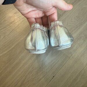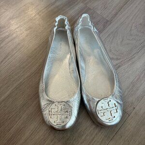 Tory Burch Reva Ballet Flats Metallic Silver Leather Women’s Size 8.5