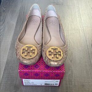 Tory Burch Reva Ballet Flats in Bronze Metallic Cobra
