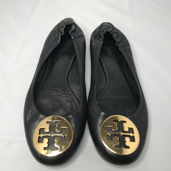 Tory Burch Reva Black Ballet Flats Gold Emblem 8