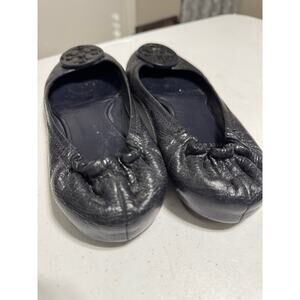 Tory Burch Reva Black Leather Ballet Flats Size 7