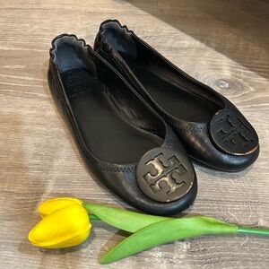 🖤 Tory Burch Reva Black Leather Flats - Size 5M🖤