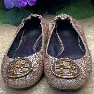 Tory Burch Reva Coconut Brown Stingray Leather Ballet Flats SZ 7 B