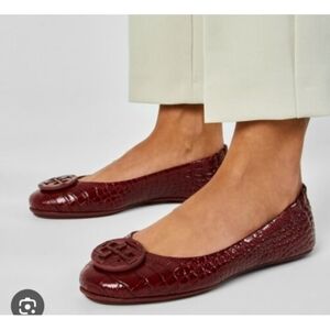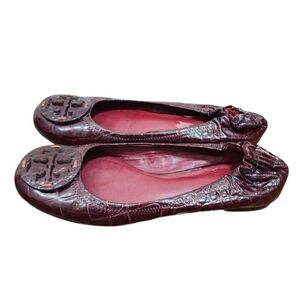 Tory Burch Reva Croc Embossed Patent Slip On Ballet Flats Size 6 Burgundy Red