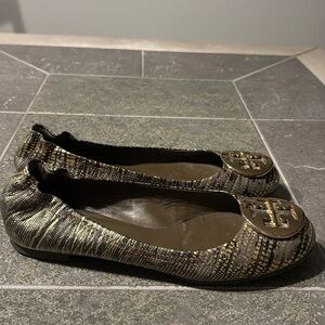 Tory Burch Reva Embossed Gold Metallic Lizard Ballet Shoes Size 7.