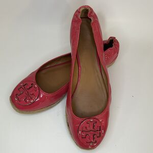Tory Burch Reva Espadrille Ballet Flats Hot Pink Patent Leather Womens Size 10.5