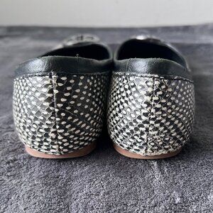 Tory Burch Reva Flat Snake Skin with Black/Pewter Hardware Size 8