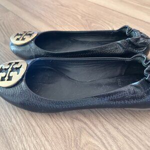 Tory Burch Reva flats in size 6, excellent condition, light wear. Classic Tory Burch black leather flats featuring the iconic gold logo medallion. Gently used with some wear on the soles, but still in good overall condition. Perfect everyday shoes that combine comfort and style.