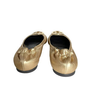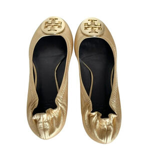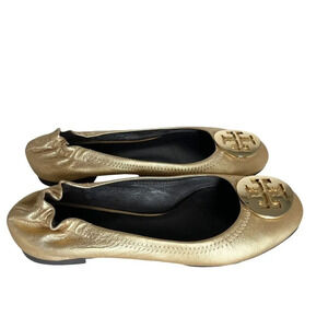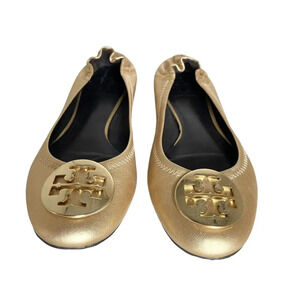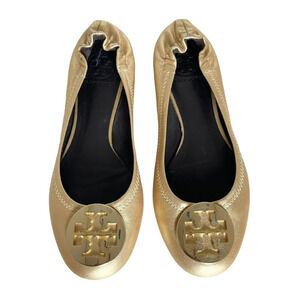 Tory Burch Reva Gold Leather Round Toe Slip-On Ballet Womens Flats Size 7M
