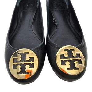 Tory Burch Reva Mestico Ballet Flats Black Leather Round Toe Logo Medallion 6