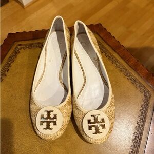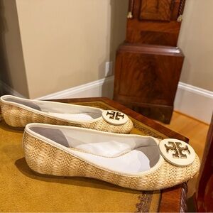 Tory Burch Reva flats raffia and white leather with gold hardware size 9