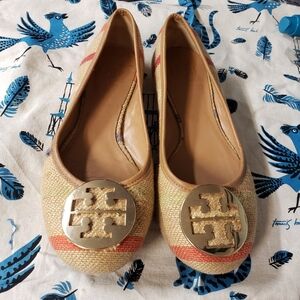 Tory Burch Reva Raffia Woven Striped Flats size 8½