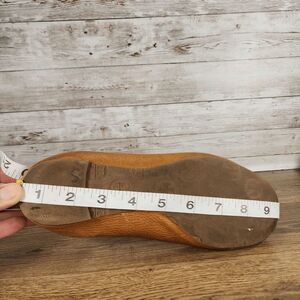 Tory Burch Reva Royal Tan Medallion Logo Leather Ballet Flats Women's Size 6 . Please see photos for flaws. Size is faded off please see measurements