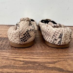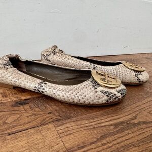 Tory Burch Reva Snakeskin Ballet Flat Shoe Gold Logo Women's Size 6 - very good used condition - snakeskin print with gold Tory logo at toe - size 6