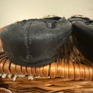 Tory Burch Reva Women's Leather Ballerina Black Gold Logo Flats Shoes Size 6