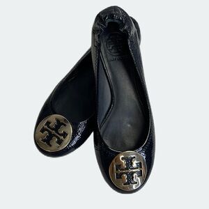 Tory Burch / Reval Flats / Gold Emblem / Navy Patent Leather / 6.5