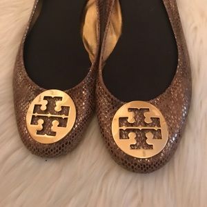 These shoes have been well worn, but still have plenty of life left in them! The back heels show the most wear, but it is not visible when wearing. The shoes have removable inserts, and even though the pattern has worn off in some areas it is hard to tell and these would still be a great pair of flats that you don't have to worry about being too careful with! Please comment if you'd like to see more pictures. Offers welcome!!