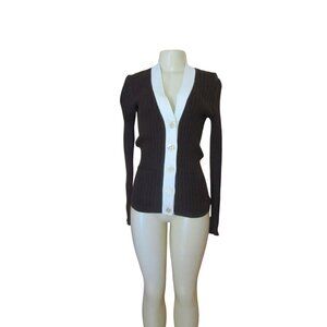 Tory Burch Ribbed Cotton Brown & Cream Button Down Cardigan S