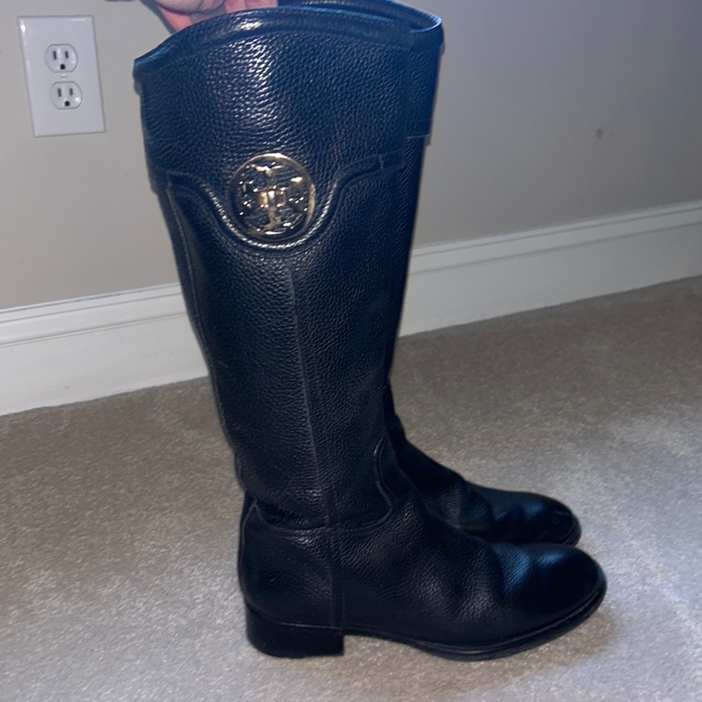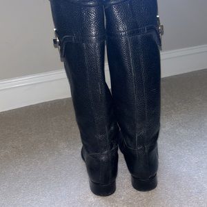 Size 9, leather, authentic, gold plated emblem, worn, some scratches in the front