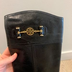 Black Leather Tory Burch riding boots with gold zipper / accents. They’ve been re-soled once and may need to re-soled again. Size 7.5
