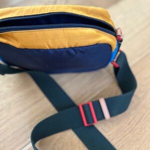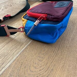 Chic crossbody bag with a bold color palette. Features adjustable strap and front pocket. Only used once or twice, excellent condition. Great size and fun colors!!