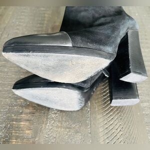 Tory Burch Rivington Leather Suede Toe Cap Black Block Heel Booties Size 8