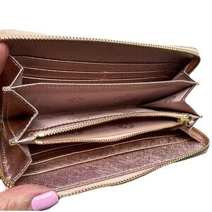 Tory Burch Robinson Continental Large Accordion Zip Wallet Rose Gold Shiny