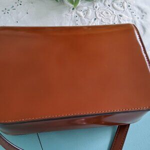 Spazzolato Patent is a full-grain Italian leather that is hand-polished to give it its high shine and glossy finish. It is less shiny and not as stiff as patent leather. The leather is low maintenance as you just need to wipe it clean. This bag is gently used and has one tiny hard to see mark on the front of the bag as shown in the last picture. The interior has some light marks but overall the bag looks new. It measures 8.3 x 6.1 x 2.4. The interior has one slip pocket. The magnetic closure is very easy to close. The strap has snaps on it and you can make the bag any length you want it to be. Neiman Marcus has this bag for sale right now at $420