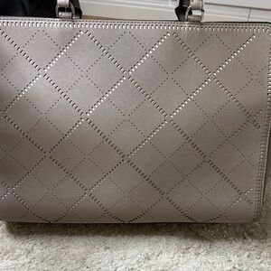 Tory Burch Robinson Crosshatch Tote Shoulder Bag Taupe