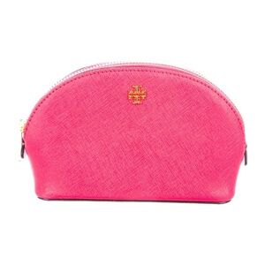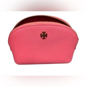 Tory Burch Robinson Emerson Leather Make Up Travel T Logo Cosmetic Zip Case