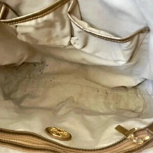 Tory Burch Robinson Gold Metallic Saffiano Mirror Tote Purse