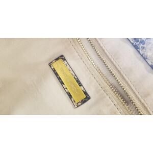 Features: Double handles, detachable adjustable crossbody strap, magnetic snap closure, lined interior, two exterior zip compartments, one interior zip pocket, and two interior slip pockets.