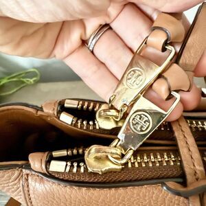 Tory Burch Robinson Pebbled Leather Square Tote in Tigers Eye (Tan) - EUC