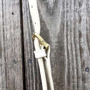 Interior has tan logo woven lining, two interior slip pockets, one zipper pocket.