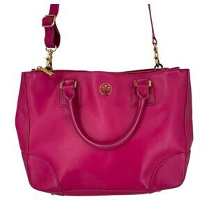 Tory Burch Robinson Saffiano Leather Double Zip Tote Crossbody Large Fuschia