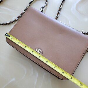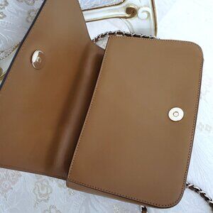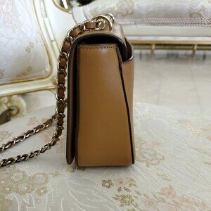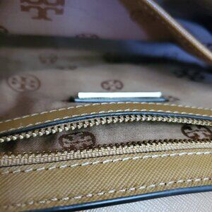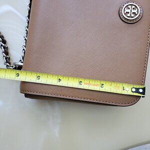 Tory Burch Robinson Tan Saffiano Leather Logo Shoulder Bag Chain Crossbody