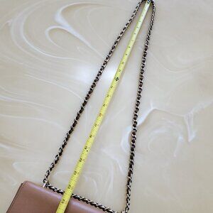 The chain shoulder strap can be worn long or doubled.