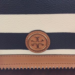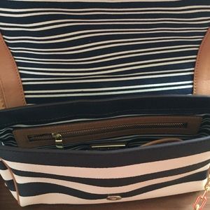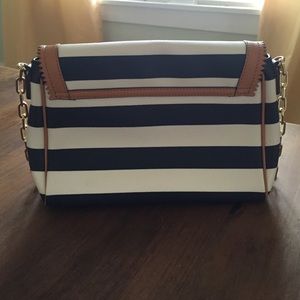New without tags. Navy and blue stripes with gold hardware. Adjustable shoulder strap.