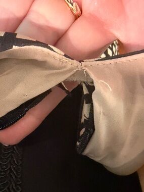 A couple of threads that need to be snipped - see pics. Zips on side, it does not zip up all the way to the armpit, but I’m not sure if it’s supposed to.. see pic.