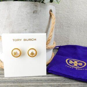 Tory Burch Rope Pearl Stud Earrings Silver White OS