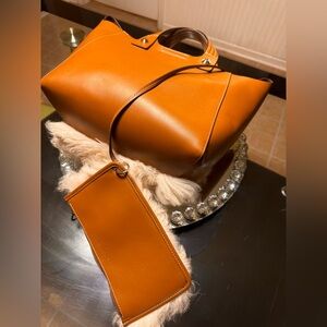 Tory Burch Rory Mini Shearling Tote.