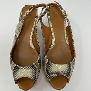 Tory Burch Rosalind Snakeskin Embossed Leather Cork Platform Wedge Sandals