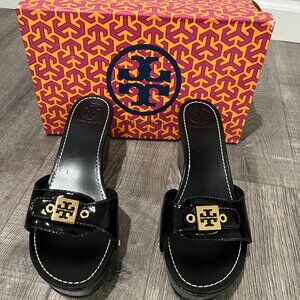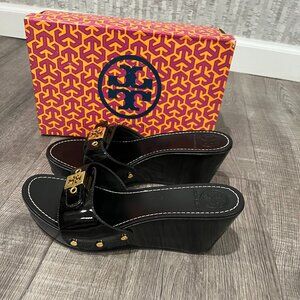 Tory Burch Rosie Black Patent Wedge Size 8.5M