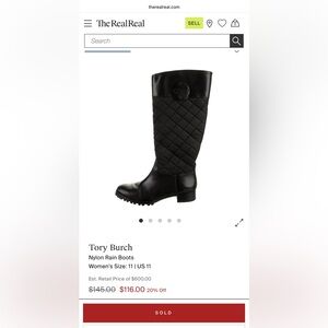 Tory Burch Rowan riding boot — leather, with nylon quilted detail and TB logo. Worn a handful of times (can barely tell), great condition!