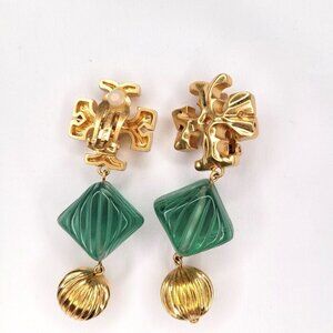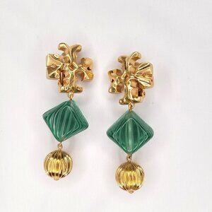 Tory Burch Roxanne Azure Green 18K Gold Plated Double Drop Clip-On Earrings