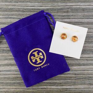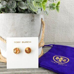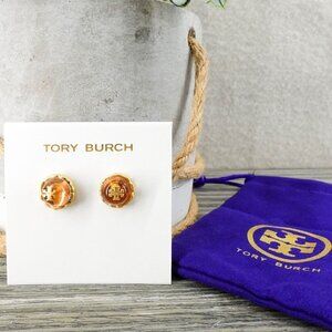 Tory's signature style truly stands out on these sculptural glass-inlay studs bearing the iconic double-T logo.