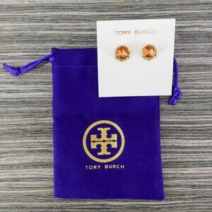 Tory Burch Roxanne Circle Stud Earrings Rolled Brass/Pale Papaya OS