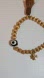 Beautiful Tory Burch “Roxanne” beaded stretch bracelet featuring gold ribbed beads and three unique charms — a navy/white evil eye bead, striped navy bead, and TB logo charm. Includes tassel accent.