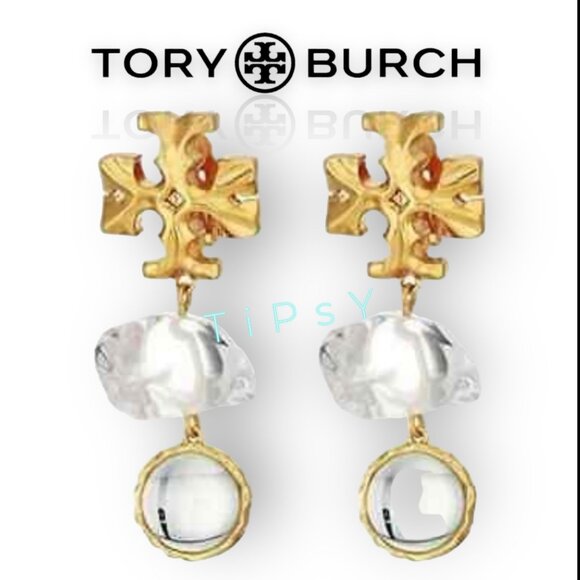 Elevate your accessory game with these Tory Burch earrings. They boast a chic blend of gold and silver, paired with striking clear gemstones.