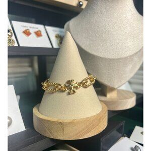 Tory Burch Roxanne Gold-Tone Chain Link Bracelet With Signature Logo Charm